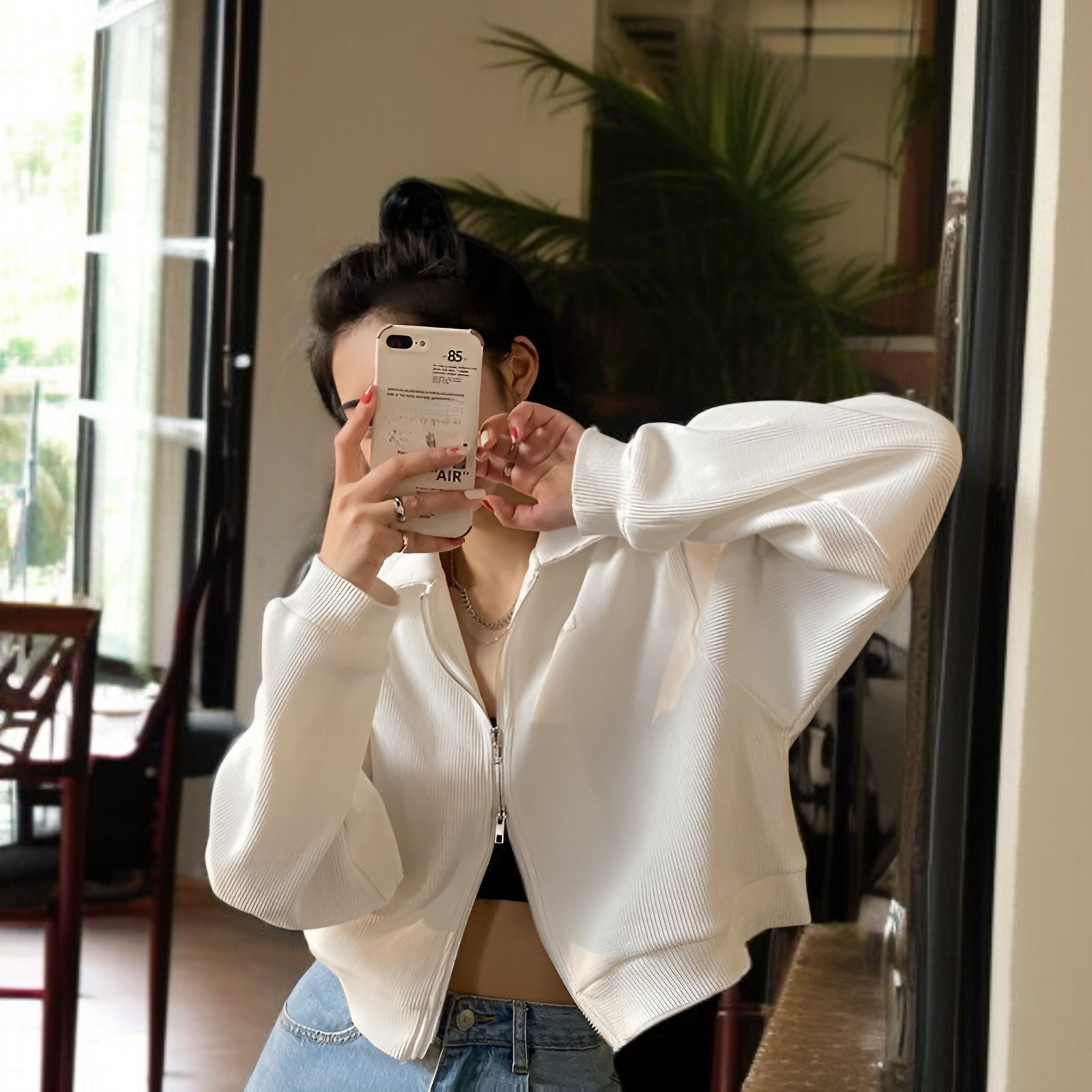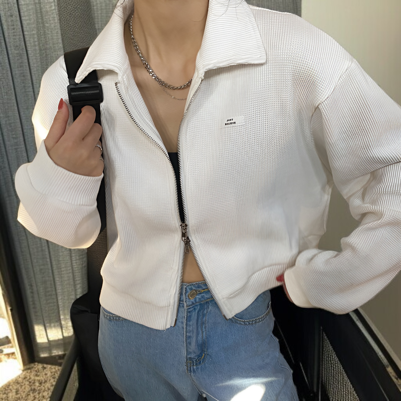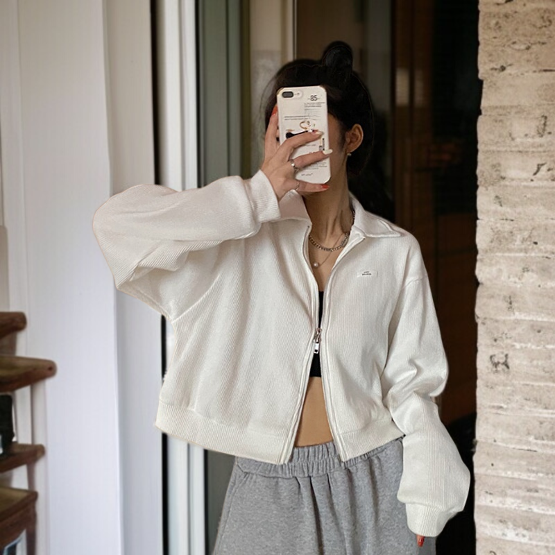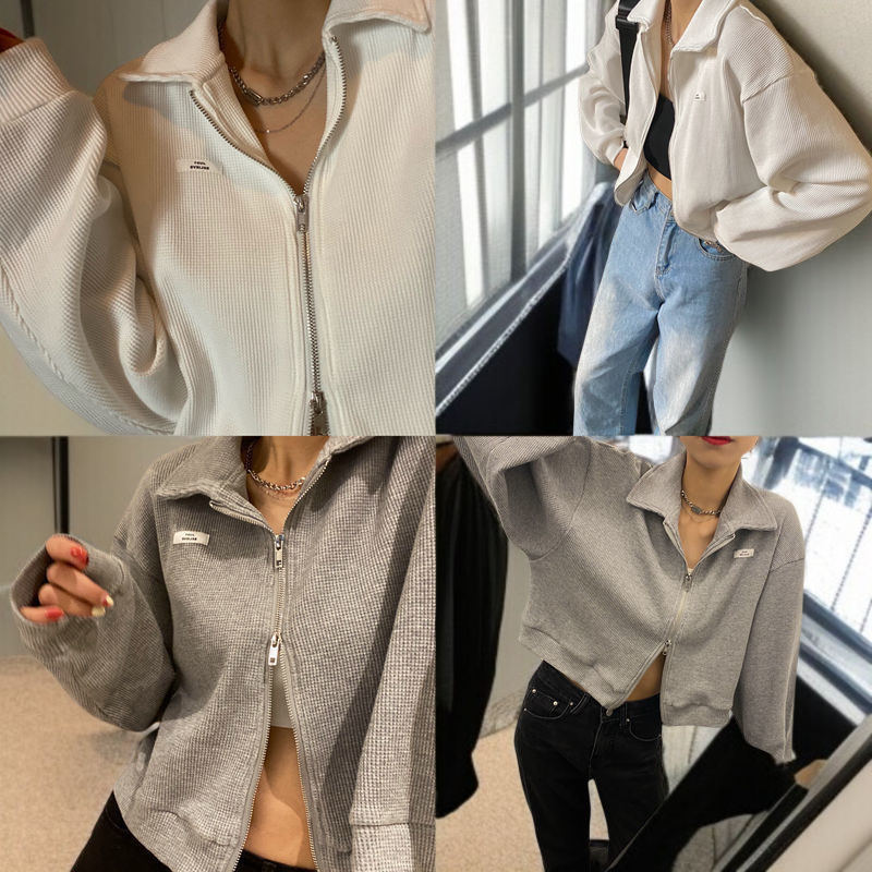 女性用ジッパー付きスポーツワッフルジャケット、春と秋のスタイル、万能カーディガン、学生向けの新しいスタイル、ショートトップス